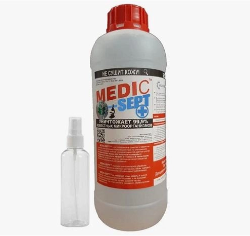 - Полимерный бесспиртовой кожный безболезненный антисептик пролонгированного действия для рук MEDIC-SEPT весом 1 кг поставляется вместе с бутылочкой-пульверизатором для нанесения средства на кожу рук. При покупке Полимерного бесспиртового кожного безболезненного антисептика пролонгированного действия для рук MEDIC-SEPT в других фасовках, количество бутылочек-пульверизаторов для нанесения средства на кожу рук поставляется так же из рассчета 1 бутылочка на 1 кг средства антисептика пролонгированного действия для рук MEDIC-SEPT.